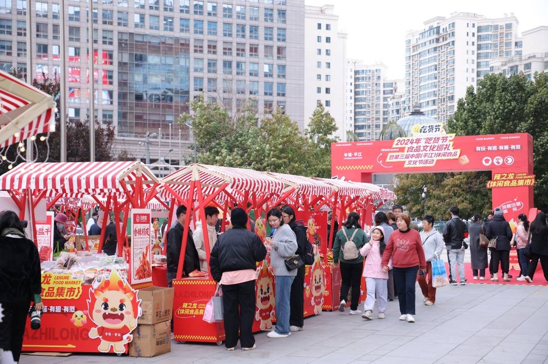 红红火火的辣条、琳琅满目的食品、各式各样的摊位、熙熙攘攘的人流……10月20日下午,首都北京民众在朝阳大悦城正门广场举办的“辣之龙”休闲食品集市活动上体验到了来自湖南省平江县的特色休闲美食,不少80后、90后消费者在品尝了麻辣鲜香的辣条后,更是表示“找到了儿时的味道”。而这正是2024年“吃货节”食品文化巡礼暨第三届中国(平江)休闲食品文化节活动向大众展示的内容之一。