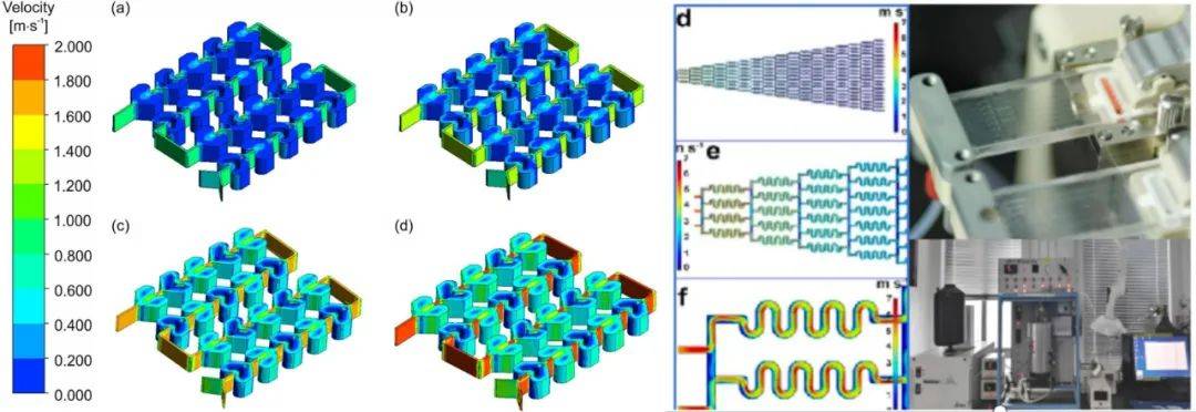 其次是流体模拟计算与结构设计模块。该平台通过独特的模拟计算与微流道结构设计,能够针对不同反应类型进行传热和传质评估,实现湍流强效混合的结构优化。流道形状的多样化设计,如三角形尖角、圆形、折线等,不仅优化了流体混合效果,还减少了压力损失。平台同时还支持跨尺度反应控制,实现从单相到多相催化反应的灵活转换。