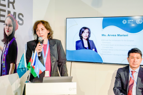 欧洲气候公约大使、欧洲创新理事会评审委员会成员Arvea Marieni女士在开场发言中以“创新”为主题,呼吁各界通过加强协作和跨部门合作推动能源和生态转型。她强调,当前的全球气候目标要求我们打破行业壁垒,采取横向的合作方式,将一个领域的经验推广到其他领域。例如,欧洲气候公约作为一项旨在加速转型的自愿行动,正在通过吸引普通民众和青年参与来扩大影响力。她指出,“没有深度的协作,就不可能实现创新;没有全球性的合作,就无法实现生态和能源转型。”此外,她呼吁各国重新审视经济模式,明确价值导向,以更紧迫的态度应对全球气候挑战。