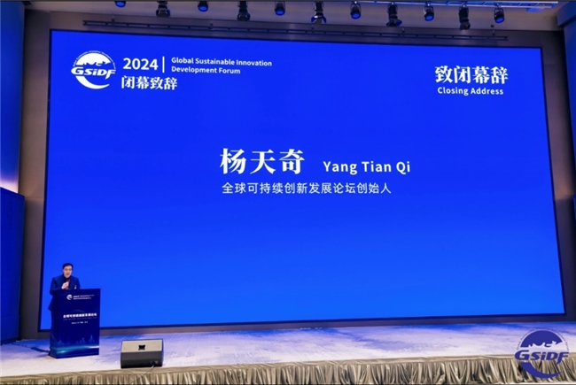 在闭幕式上,论坛创始人杨天奇进行了总结发言。他表示,本次论坛以“推动全球可持续创新发展理念革新,产业落地创新发展,聚集创新人才,搭建交流平台”为目标,未来,论坛将继续推动全球可持续创新发展理念的革新,加强产业落地创新发展的实践探索,不断汇聚创新人才与搭建交流平台,为解决全球可持续发展问题贡献力量。