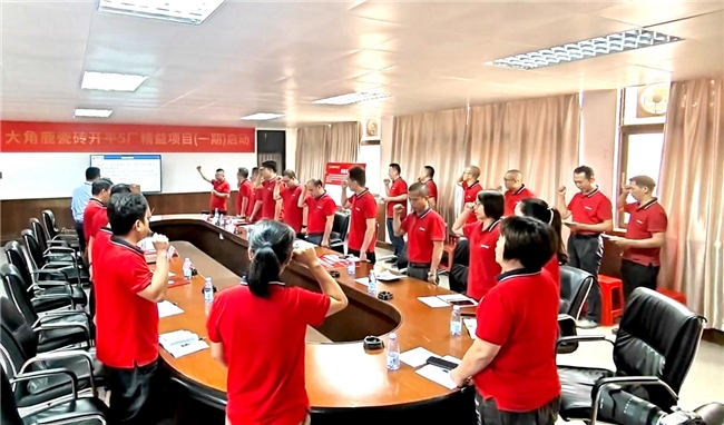 “改善,持续改善,精益生产,质量第一!”此次精益项目启动会的圆满召开,为大角鹿的高质量发展注入了新的理念和活力。大角鹿将以此次启动会为契机,推进精益生产管理走深走实,不断优化流程、提高效率,为企业加快培育瓷砖新质生产力赋能,驱动大角鹿朝着更高效、更精益、更可持续的高质量发展道路坚实迈进。