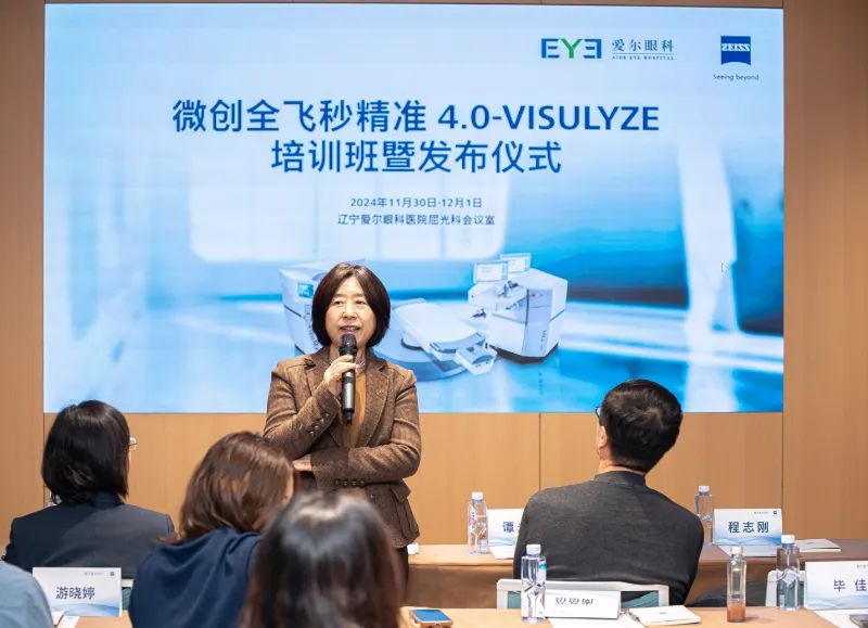 随着微创全飞秒精准4.0-VISULYZE系统的逐步推广和应用,2024年11月30日-12月1日,辽宁爱尔开启了一场科技与视力矫正完美融合的盛宴——微创全飞秒精准4.0-VISULYZE培训班暨发布仪式。爱尔眼科医院集团屈光手术学组副组长、爱尔眼科辽宁省区副总院长方学军,吉林大学中日联谊医院王淑荣教授,爱尔眼科山西省区副总院长陈鹏,蔡司辽宁省区销售经理冷松,蔡司屈光临床应用专员徐力兴,以及来自辽沈地区屈光手术专科的医生近40人参与了此次培训班。