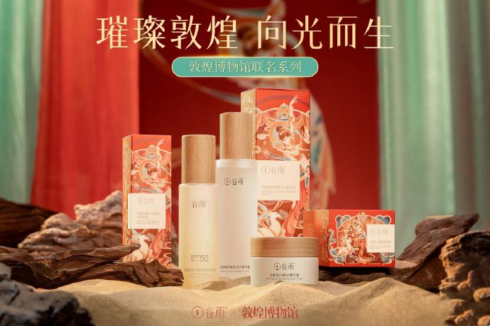 此外,在品牌传播方面,谷雨也通过跨界联名合作的方式,实现品牌与中国传统文化的深度连结。今年,谷雨携手敦煌博物馆推出联名系列产品,在产品外包装设计上巧妙融合敦煌壁画中的两大经典元素——飞天和九色鹿,淋漓尽致地展现了敦煌的独特艺术魅力。以品牌之力传承非遗之美,也通过这种方式传递中式文化的内涵,让更多年轻消费者理解与喜爱传统文化。