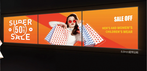在外观方面,超薄机身和极窄四等边的外观设计,让TCL数字标牌更具简洁大气风格,并有效节省店面空间,支持横竖屏播放,更能灵活适应各种安装需求。在多联屏场景下,通过视频、滚动海报等动态化内容展示进一步吸引消费者注意,大大增强购物体验。此外,TCL在屏幕出厂前会逐台校准画面显示,确保色准高度一致,多联屏拼接显示无色差。