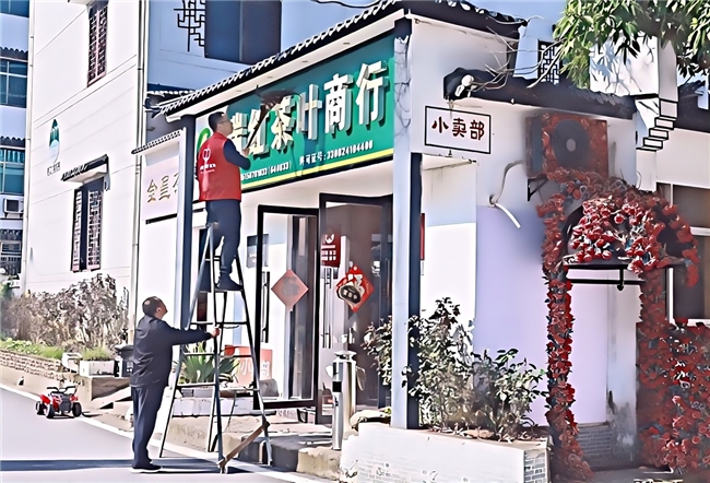 王瑞红的瑞红茶叶商行是兼顾茶叶、烟、副食品的一家商店,位于开化县金星村,每年来金星村开展“循迹溯源”活动的人数众多,客流量可观。