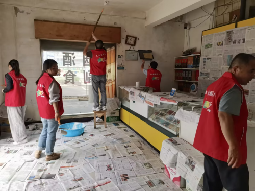 图为烟草工作人员协助终端店铺进行改造升级 余倩摄