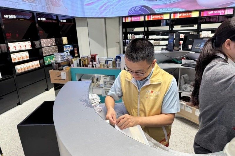 协助一线员工完成商品打包、限流引导、防损防盗、贴签理货、秩序维护等工作,这个春节,“黄马甲”们穿梭在中免集团cdf海口国际免税城的各个角落。