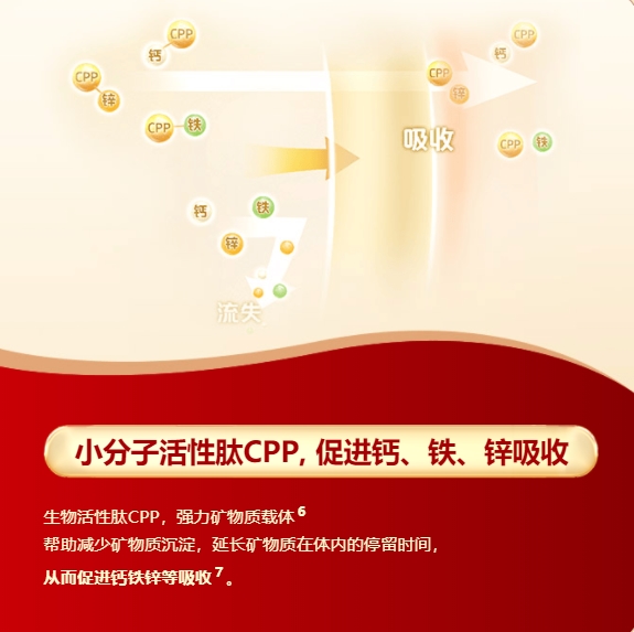 在奶粉市场竞争日益激烈的今天,创新工艺成为了品牌脱颖而出的关键。荷致白金版通过先进的双微小分子工艺,将奶粉中的营养分子细化至更易被宝宝吸收的状态。其中,30%小分子蛋白与小分子肽CPP的组合,显著提升了产品的吸收力。小分子蛋白是通过水解技术处理乳清蛋白,将大分子蛋白水解为适度水解的小分子蛋白,降低宝宝的肠胃负担。而酪蛋白磷酸肽(CPP)则是以牛乳酪蛋白为原料,通过生物技术制得的具有生物活性的小分子肽,它能够促进钙、铁、锌等矿物质的吸收和利用。这两种营养素的“预消化”处理,使得荷致白金版奶粉中的营养成分能够更高效地被宝宝身体吸收。不仅提升了奶粉的营养吸收效率,更满足了家长们对宝宝健康成长的高品质追求。