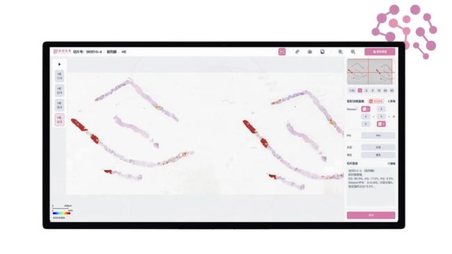 2024年10月,透彻未来发布Thorough Insights(透彻洞察)4.x——全球首个临床应用级病理人工智能大模型产品,采用十亿级参数规模,并创新性地结合无监督、弱监督和有监督学习,为病理诊断提供准确、稳定、全面、快速的人工智能解决方案。Thorough Insights覆盖大多数组织学病理诊断场景,支持十余种高发肿瘤器官病理智能分析,精准定位癌变区域并自动完成疾病分型。在大型医院的临床病理应用中,其敏感度接近100%,特异性超过94%,在中小型医院的敏感度同样接近100%,特异性超过90%。面对复杂、多变的诊断场景,该系统具备强大的适应能力,成为医生稳定高效的辅助诊断工具。此外,在病理科的实际应用中,Thorough Insights能够在8小时内分析超过1300张小标本切片或450张大标本切片,大幅提升病理科室的诊断效率,减轻医生工作负担。