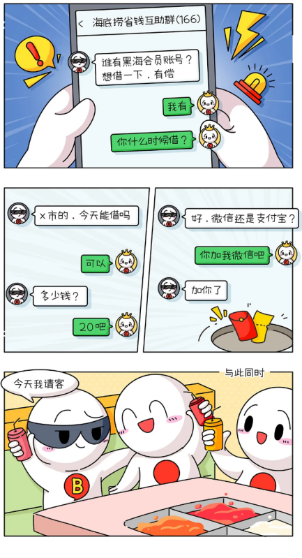 账号外借,就相当于资产裸奔。这也是黑产的常见套路:先支付账号拥有者一定的佣金,登录账号后,将积攒的捞币兑换优惠券等都是“基本操作”。有些不法分子还会以登录不上为由,让黑海会员发送验证码,实则是换绑操作;更有甚者会直接将账号注销。