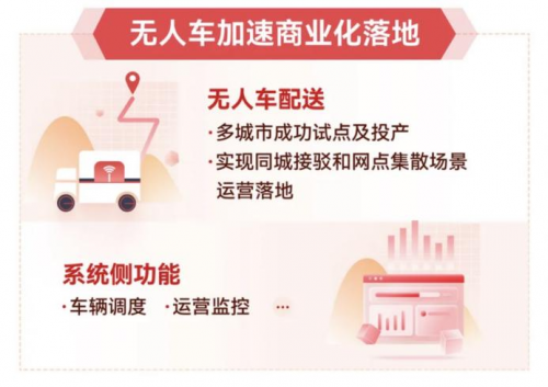 其次,顺丰同城还加快无人机、无人车配送试点的步伐,全面探索“天地人”多元化运力生态,对骑手网络进行有效补充。继2022年在深圳试点上线无人机急送服务后,2024年顺丰同城又在多个城市推进无人车配送试点与投产,并围绕“最后一公里”业务,重点探索无人车在同城接驳与网点集散的运营模式,这些举措进一步优化了履约效率。