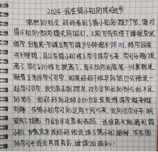 (简小知写字课学员悠悠的学习心得,受访者供图)