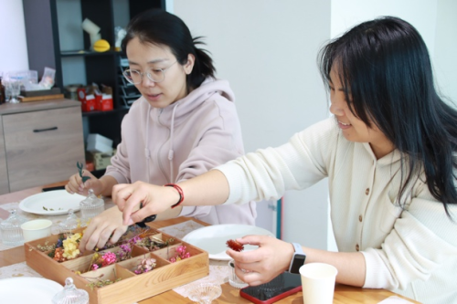 在香烛制作环节,平时干练的职场女性化身充满魅力的“调香师”, 根据个人喜好自由搭配,尝试不同的香型组合。整个过程中,大家兴致勃勃,纷纷沉浸在“香”的世界中,探索属于自己的独特味道。最终呈现出一款款色彩斑斓,芳香馥郁的完美作品,每一款香烛都承载着参与者的个性与情感,有的清新淡雅,有的浓郁热情。