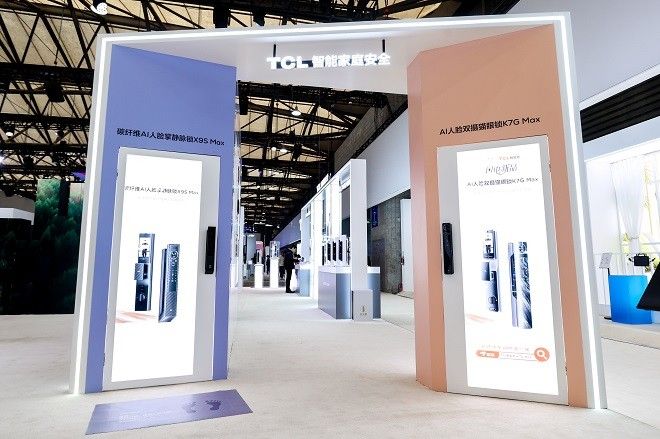 本次展会,TCL实业还推出了全球首款碳纤维AI人脸掌静脉锁X9S Max,碳纤维机身拥有更强的抗碰撞、抗腐蚀和耐高温性,强度是钢铁的7倍。3D结构光人脸识别和AI自进化掌静脉识别技术为用户提供便捷又安全的入户体验。TCL AI人脸双摄猫眼锁K7G Max搭载亚毫米级3D结构光人脸传感器,AI技术精准捕捉用户面部深度信息,安全性提升了13.25倍。同时这两款旗舰产品还配有AI双摄猫眼和内置高清大屏,可随时掌握门内外动态,守护您的家庭安全;全新升级6000mAh电池保障续航,并配备AI亲情助手等智能功能,让智能锁更懂您。