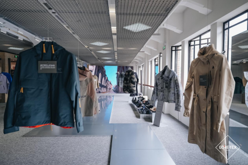 当一件件打破场景和环境界限的时尚单品诞生,GORE-TEX品牌以科技之力悄然解构传统设计的桎梏,让时尚在功能性之上自由展现。拾级而上,「品质印记」墙上两侧陈列的每一张服装、鞋品上清晰的GORE-TEX品牌LOGO标识特写,如同行业集体认证的品质印章,阐述着GORE-TEX 面料科技在产业链中的核心价值。