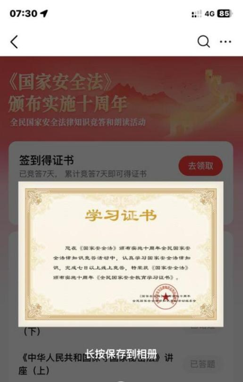 以考促学:开展“保密观”、“中国普法”微信公众号国家安全知识竞答,重点考核日常工作和生活中的保密要求、涉密突发事件应对流程等内容,新入职员工小陈感慨:“原来日常生活中许多事,也关乎国家安全,今后我将更加注意保密防范!”
