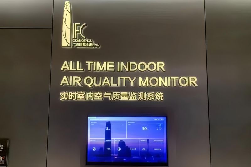 健康数据引领:健康数据监测为写字楼的健康建筑管理提供了科学依据。通过智慧楼宇系统,越秀商管实时监测空间的健康指标,为城市健康管理提供数据支撑。例如,通过三重净化技术(新风预过滤+MERV13静电除尘+HEPA深度净化)、光催化分解VOCs及智能风量调节系统,实现室内PM2.5浓度≤5μg/m³、CO₂含量<800ppm,远超国际健康空气标准;通过对甲醛、TVOC、臭氧等12项空气指标实时监测,动态优化新风能耗,全年节能率达38.6%;同时,依托BIM空间建模与BA系统智能联动,精准控制区域送风效率,空气污染物综合去除率超99%,为业户打造“会呼吸的绿色空间”,重新定义智慧建筑的生态未来。