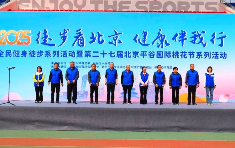 4月26日,2025“徒步看北京 健康伴我行”健身徒步系列活动暨第二十七届北京平谷国际桃花节系列活动启动。原北京市委组织部常务副部长史绍洁,北京市局党组成员、副局长石风华,北京奥运发展促进中心副主任高云超,平谷区委副葛海斌,区人大常委会副主任沈立军,副区长马冬梅,区政协副杨河清等出席启动仪式,共同为徒步活动鸣笛发令。