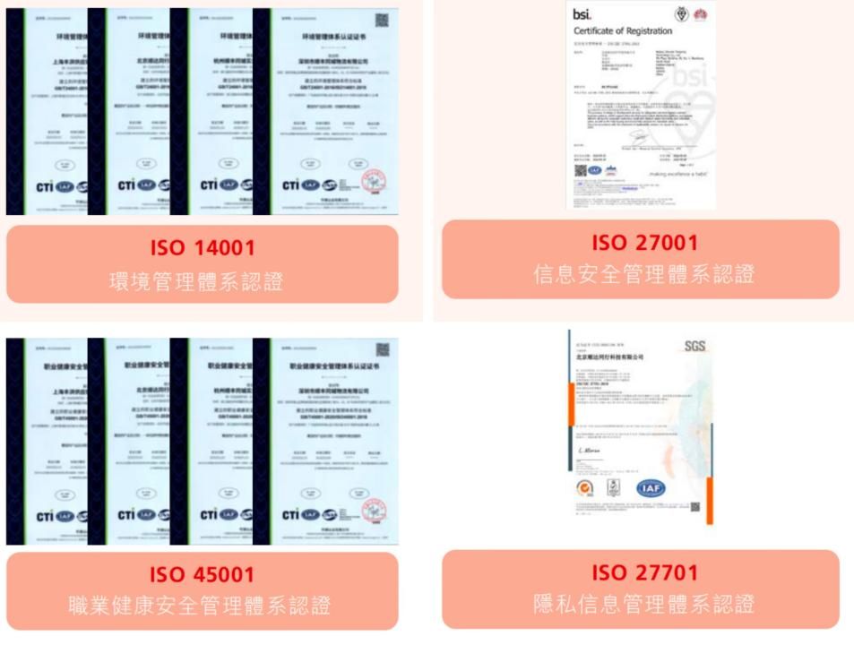 此外,顺丰同城构建完备的国际合规管理体系,已通过ISO 14001环境管理体系、ISO 45001职业健康安全管理体系、ISO 27001信息安全管理体系及ISO 27701隐私信息管理体系等多项ISO体系认证,实现管理体系和水平达到国际领先水准。