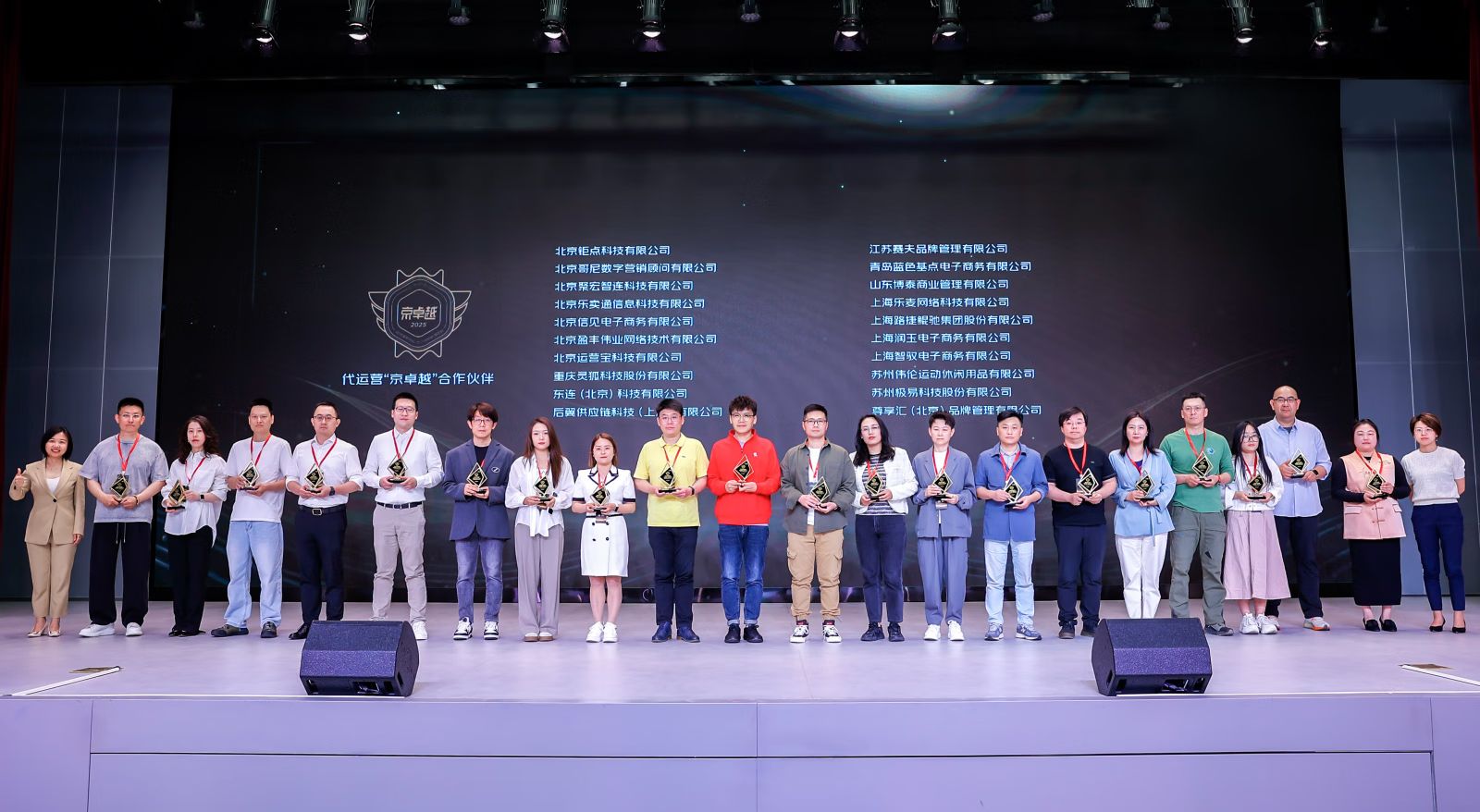 为了表彰过去一年间在交易规模、服务质量、履约效率及商家满意度等方面表现突出的合作伙伴,大会揭晓了2025“京卓越”获奖服务商名单,为120家优秀服务商及10位培训讲师分别颁发了代运营、内容营销、客服外包、软件工具等不同类型的“京卓越”奖项。