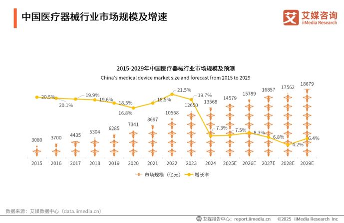 iiMedia Research(艾媒咨询)数据显示,2024年中国医疗器械行业市场交易规模达13568亿元,预计2029年将攀升至18679亿元。艾媒咨询分析师认为,得益于医疗技术进步、民众健康意识提升,未来随着科技不断创新、医疗投入持续加大,医疗器械行业有望保持良好发展态势,市场规模将进一步扩大,产业结构也将不断优化升级,为医疗健康事业注入更多活力。这为IVD领域的发展提供了良好的行业大环境。