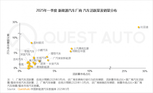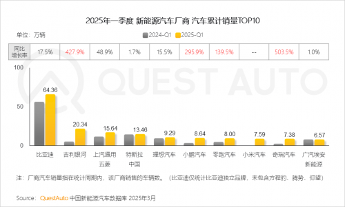 一、市场发展篇:2025年一季度新能源车企呈现“强者恒强”格局,比亚迪持续领跑,新势力分化加剧