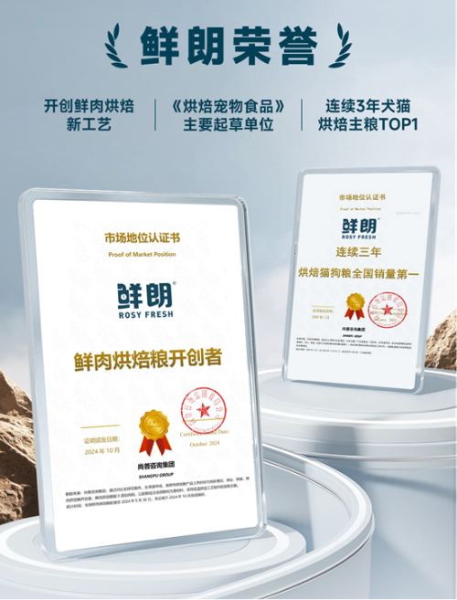 2024年,鲜朗已经获得连续3年烘焙犬猫主粮第一;累计服务超270w以上的养宠家庭,稳坐国内宠物食品第一把交椅!