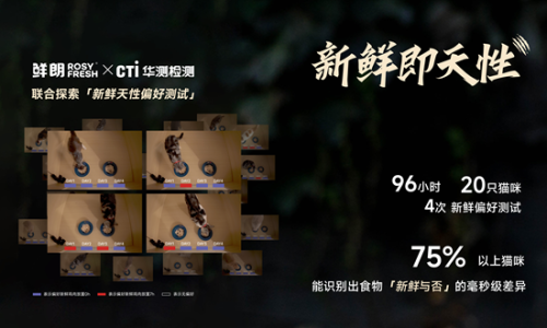 这一次鲜朗携手CTI华测检测开启了这次关于猫咪新鲜天性偏好的测试实验,发布会现场,华测周总对此次实验做了结果分享和解读:
