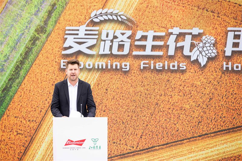 百威亚太可持续发展及采购副总裁杨凯在致辞中特别向本地农户及江苏农垦致以诚挚感谢,并表示:“正是与江苏农垦的紧密合作,让我们成功在本土培育出两个优质大麦品系与三个酒花品种,开创了高品质本土原料种植的新局面。通过引入前沿技术与创新理念,我们使大麦与啤酒花在产量增长的同时,在品质上也实现了质的飞跃。从田间到餐桌,未来,我们将与江苏农垦集团携手,持续赋能本地农户,推动啤酒行业高质量发展。”
