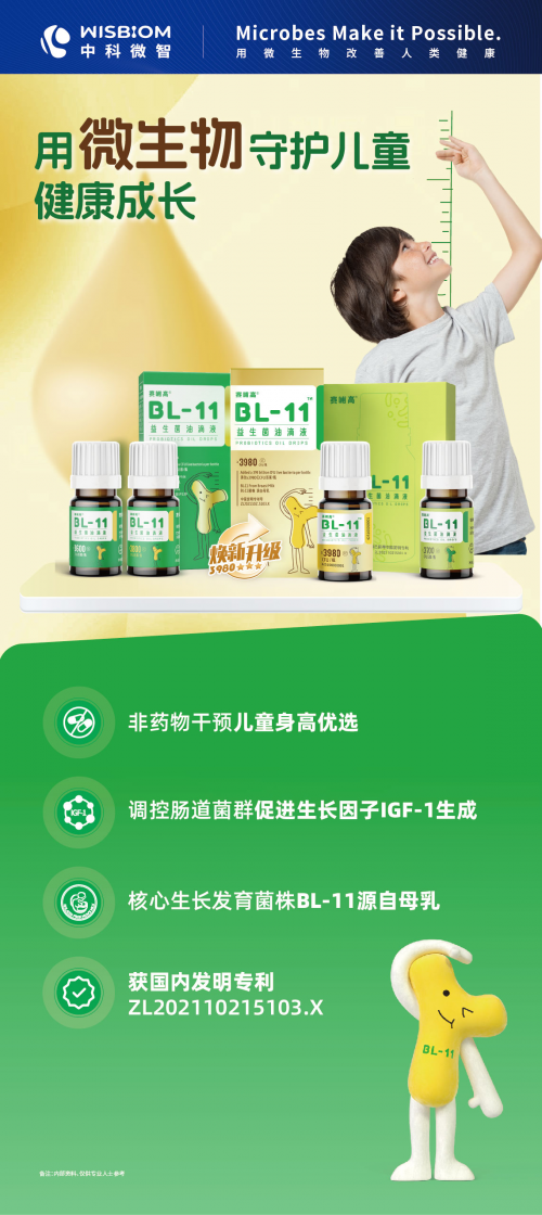 如果发现孩子的身高增长速度明显慢于同龄人,或者存在其他生长发育上的异常,家长应引起足够重视。赛哺高建议,此时应及时带孩子前往医院进行专业的检查,了解孩子的骨骼年龄、生长激素分泌情况等,以便制定出更加科学合理的追高方案。值得一提的是,赛哺高®BL-11益生菌油滴液在追高方面有独特的优势,能较好调控肠道菌群,协调营养吸收和调用,让摄入的营养更有效地作用于骨骼生长,其代谢产物和合成物甚至可以诱导内源性生长因子IGF-1生成,从而影响骨骼生长,为干预儿童身高提供了一种新方案,新方法。