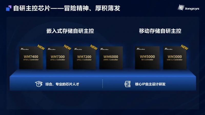 面对存储市场日益激烈的竞争和同质化趋势,江波龙从创立之初就意识到,只有掌握核心技术,才能在市场中立于不败之地。公司自2020年起便组建了专业的主控芯片团队,致力于存储芯片设计与研发。经过数年的努力,江波龙已经成功推出了多款自研主控芯片,涵盖了嵌入式存储和移动存储等多个领域。