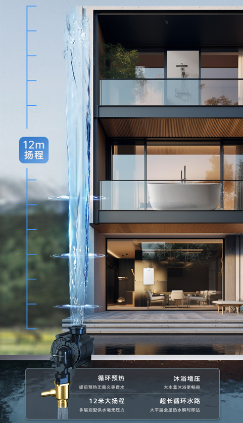增压零冷水:全屋热水瞬达,高楼层用水无忧