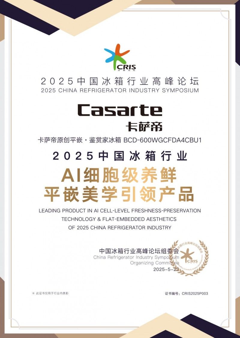 5月22日,由中国家用电器协会指导,中国家电网主办的2025中国冰箱行业高峰论坛在长沙举行,卡萨帝原创平嵌·鉴赏家冰箱获评“2025年冰箱行业AI细胞级养鲜平嵌美学引领产品”,以7天营养留存超99%的科技实力和原创平嵌美学再获行业认可。而这也为冰箱行业的下一步转型升级树立了风向标。