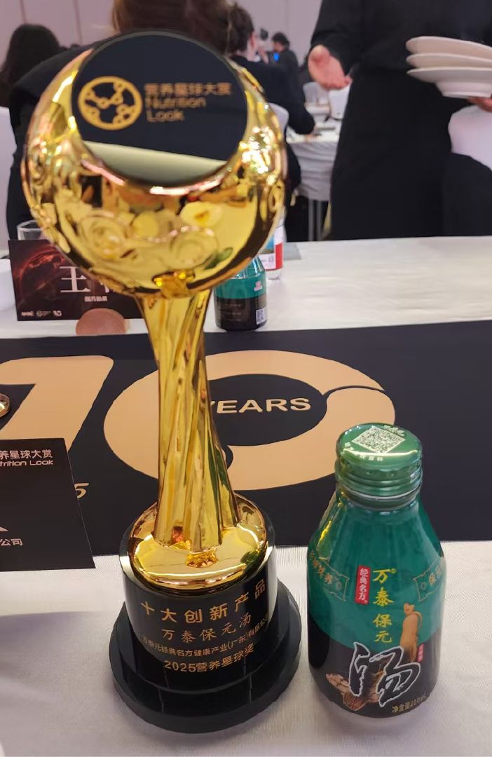 2025年5月21-23日,浙江老字号企业万泰元携重磅产品亮相中国国际健康营养博览会(NHNE),凭借首款经典名方补益汤饮——“万泰保元汤”一举斩获“营养星球大赏十大创新产品奖”,并以“干事业&养健康,喝万泰保元汤”的创新理念引发行业热议,成为本届展会的焦点。