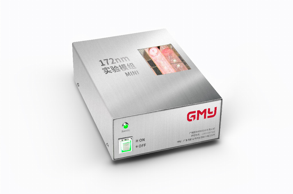 由于传统准分子光辐照器因高纯度 N₂填充结构复杂,难以实现桌面级灵活实验。广明源创新推出紧凑台式准分子光照射器——172nm MINI实验模组,机身仅相当于书本大小,采用高集成轻量化设计,打破空间与成本壁垒,助力高校、企业及研究机构轻松搭建准分子光实验环境,满足平板显示光清洗、塑料表面改性等多领域研发需求。