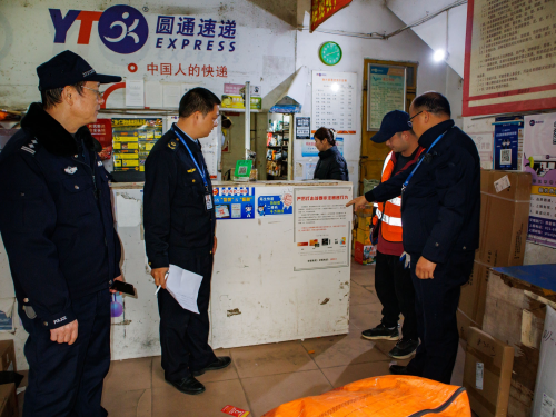 图为联合公安、市监到寄递企业开展法治宣传(柳州市融水县烟草专卖局 粟振炎 摄)