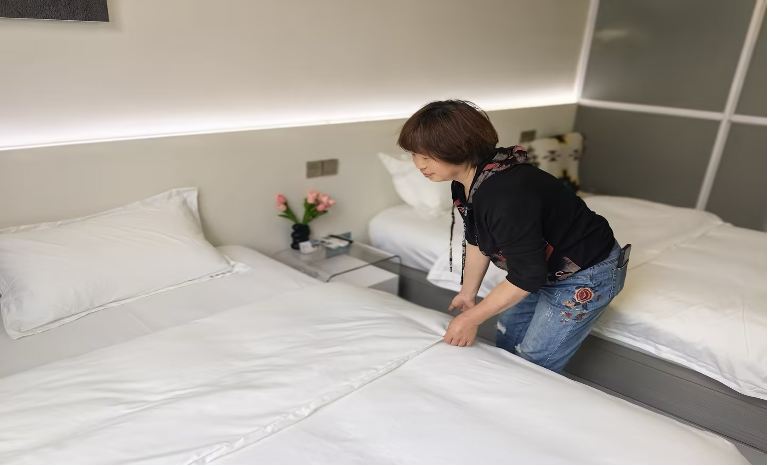 “老姚客栈”里,姚幼军的妻子也在忙碌着。正仔细地整理着房间里的床铺,擦拭干净房间里的桌椅。老姚笑着介绍道:“如今啊,咱们村里可是大变样了,房前屋后都干干净净的,道路也平整又宽敞。妻子这民宿的生意特别火爆,从而也带动了便利店的销售,店里的生意也慢慢好起来了。”言语间,满是对村子变化的自豪和对妻子事业的支持。