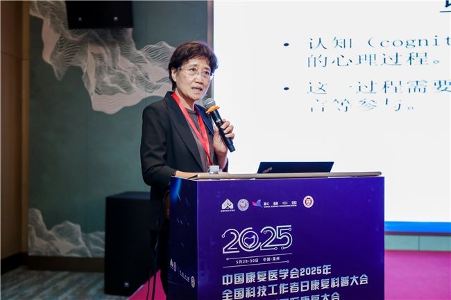 中国康复医学会认知障碍康复专业委员会主任委员恽晓萍以认知康复为切入点,分享《康复技术规范化——以老年认知康复为例》,讲述了认知康复遇到的挑战以及应对策略。
