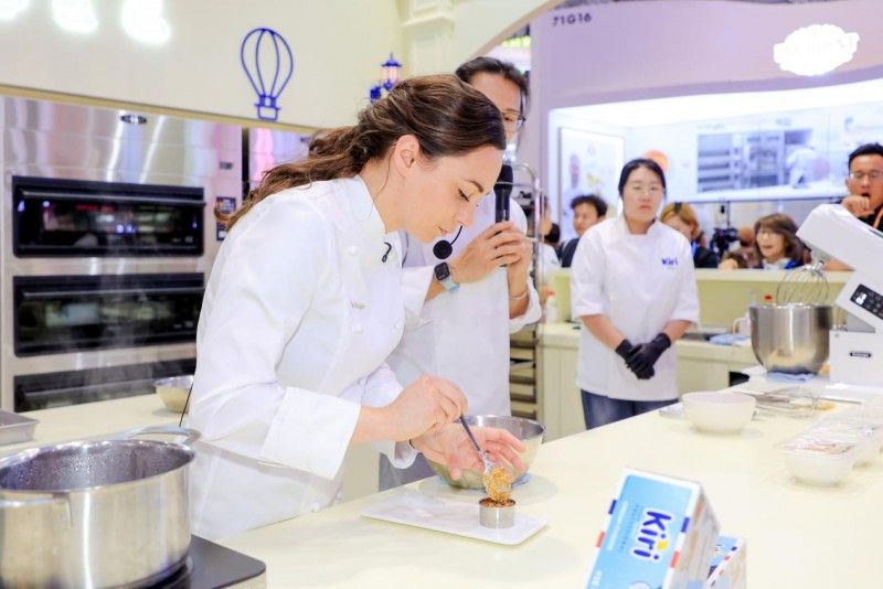 Nina的现场演绎,将Kiri品牌对“创新与专业”的追求具象呈现。通过对产品特性的巧妙运用,Kiri不仅展现出其奶油芝士的多样应用可能,更以一种优雅而实用的方式,激发专业甜品师对“原料×创意”的全新思考。