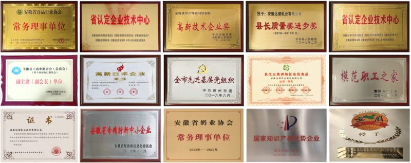 依托持续的技术积累与成果转化能力,达诺乳业已构建起完善的知识产权体系。截至目前,公司累计申请注册商标97件,其中“安徽省著名商标”2件;已申请各类专利技术81项,包括发明专利24项、实用新型专利40项、外观设计专利17项,并成功组建滁州市第五批“211人才团队”,设立市级博士后科研工作站,为技术攻关和人才培养提供有力保障。