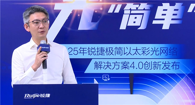 随后,锐捷无线交换产品事业部极简以太彩光方案产品经理陈献文对彩光4.0方案进行了创新解读。他以“三个‘简’字”呈现了彩光4.0的核心价值。