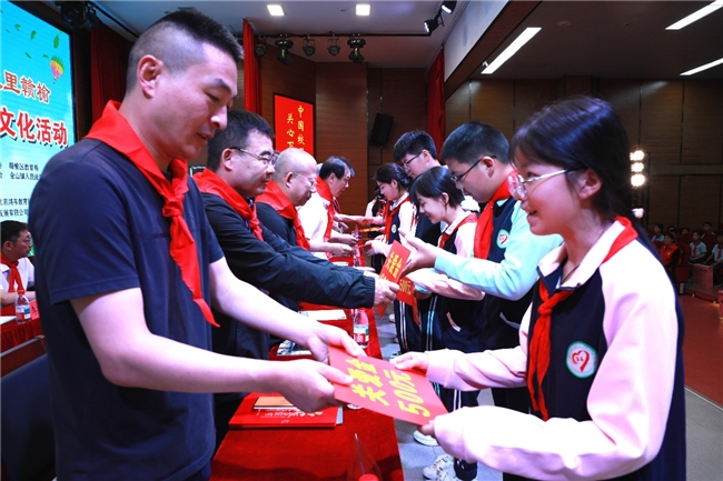“我们将以健康的体魄、阳光的心态和扎实的学识,成长为对社会有用的人,不负关心下一代爱心行的期望,不负时代的嘱托!努力成为德才兼备的金山好少年!”2025年5月28日,在中国关心下一代爱心行走进徐福故里江苏省连云港市赣榆区金山中学举行的捐赠仪式上,当1162名中小学生从爱心人士手中领取了崭新的运动服、运动鞋和有关学习用品,200名中小学生接过饱含深情的关爱金时,铿锵有力的誓言传递出乡村少年的感恩与志向。