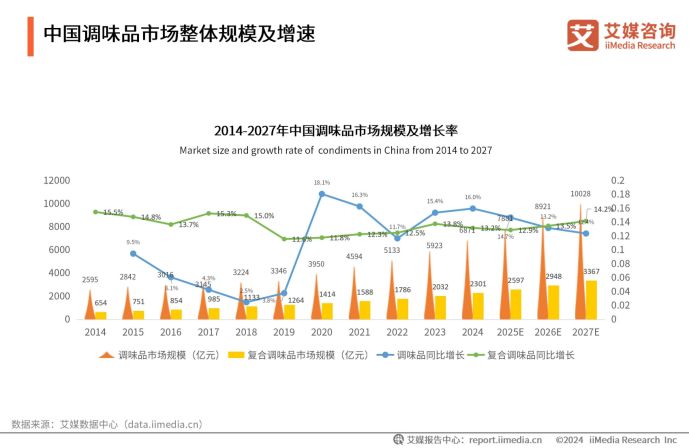 当下,中国调味品市场在消费升级与健康需求的双重驱动下,正经历结构性变革。iiMedia Research(艾媒咨询)数据显示,2024年中国调味品整体市场规模达6871亿元,同比增长16.0%,其中2023-2025年中国松茸调味料市场规模复合年均增长率达134.6%,预计2025年市场规模达15.47亿元。市场扩容的背后是消费者对便捷性、口味稳定性与健康属性的多元追求。
