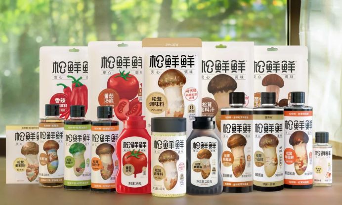 松鲜鲜以产品力与渠道力双轮驱动实现市场突围。线上,2024年全网月度曝光破5亿次,多次登顶抖音、天猫、京东等平台调味品类目榜单,通过与超60万月度合作达人及头部KOL联动,以溯源直播构建“内容种草-电商转化”闭环。线下,2023年媒体触达用户138 亿+次,进驻全国超10万+商超终端,形成“商超+便利店+精品超市”立体网络。此外,品牌加速国际化布局,2023年松茸调味料进入美、加、澳等发达国家,2024年响应“一带一路”倡议,产品上架巴基斯坦、乌兹别克斯坦等中东国家,成为健康调味品赛道增长标杆。