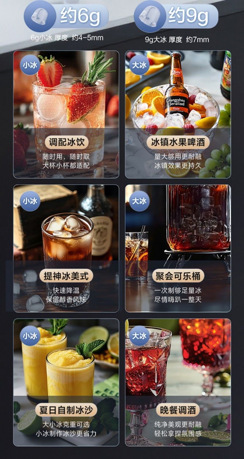 尝试过自制冰块的用户都知道,制冰看似简单,实则很难达到理想的效果。用普通冰盒冻出的冰块总是白蒙蒙的,显得有些浑浊,而制冰机产出的冰块也只是表面看起来饱满透亮,其实很多都是空心的“脆皮”冰,遇水即化,冰饮还没喝几口,口味就被冲淡了。
