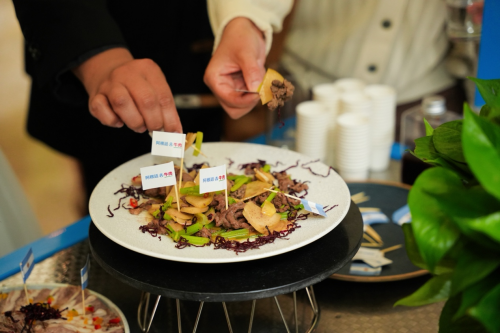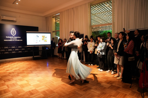 活动现场呈现了一场别开生面的跨文化美食体验。阿根廷著名烤肉厨师以传统技艺现场烹制多款阿根廷风味牛肉,牛肉香气四溢,吸引众多来宾驻足品尝,充分展现阿根廷草饲牛肉的天然风味与卓越品质。同时,中国烹饪名厨胡含也在现场倾力演绎三道经典中式菜肴,演示阿根廷牛肉在中餐语境中的多样化应用。这场中阿美食同台亮相的展示,不仅诠释了优质食材的跨文化生命力,更体现了两国人民在饮食文化上的共鸣。不仅如此,专业的探戈舞者大马先生和思萌女士也为现场宾客带来了一段优雅而充满张力的探戈舞表演,将阿根廷文化的热情与韵律诠释得淋漓尽致。
