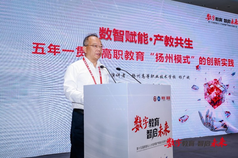 扬州高等职业技术学校党委副书记、副校长杨广斌分享了“数智赋能·产教共生-职业教育‘扬州模式’的创新实践”。杨书记从学校“双主体、三递进、四融通”的育人改革谈起,介绍了五年一贯制数智财经人才培养的扬州实践、数智赋能、产教共生的“三重驱动”效应,体现了数字经济背景下的扬州职教担当。
