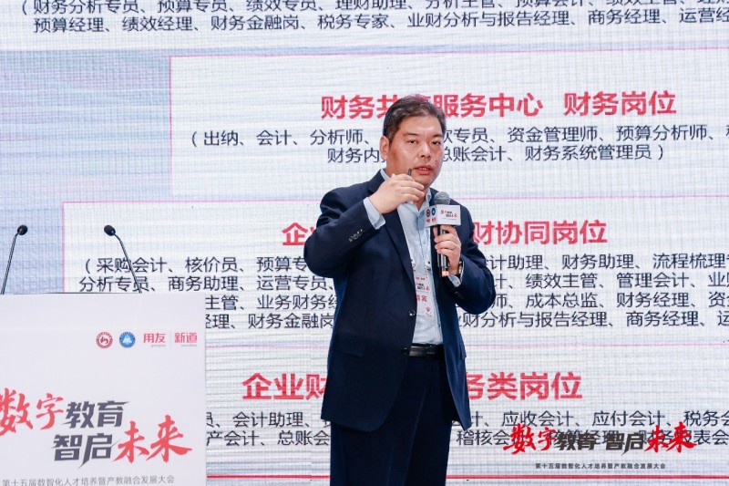 新道科技股份有限公司中职事业部高级顾问王建军作了“AI在财经商贸类专业教学中的应用”的专题分享。王顾问从AI+财商人才能力重构和教学场景探索实践等方面提出了企业的思考和独到的解决方案,通过AI技术的应用为专业教学创新提供了新路径。