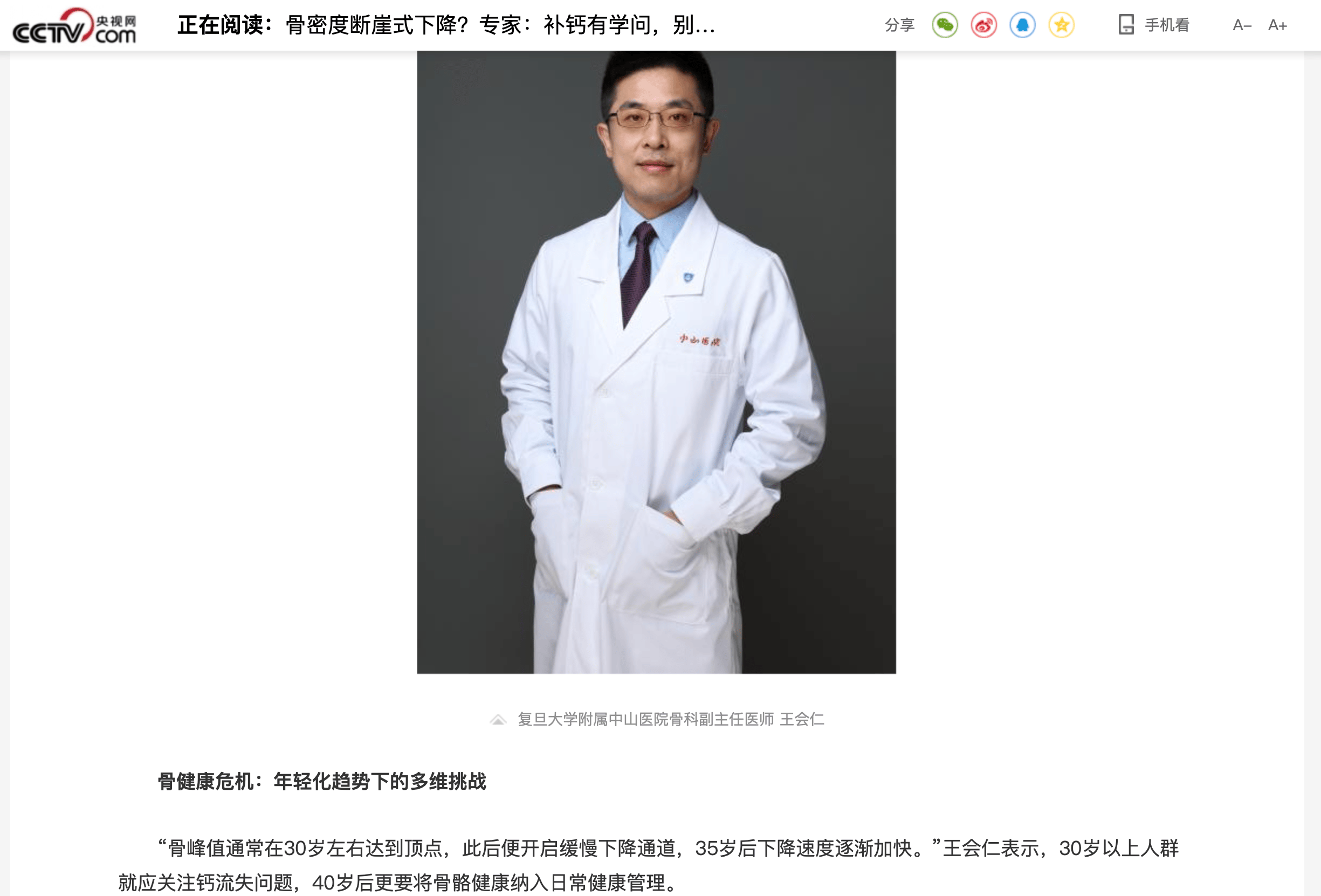 复旦大学附属中山医院骨科专家在接受央视网采访时指出,骨骼健康是多种营养成分协同作用的结果,因此单一补钙无法从根本上解决骨骼健康问题。而人体骨骼的有机质大部分为骨胶原,也决定了骨胶原补充在日常营养补充中的重要作用。王会仁表示,骨胶原就像“钙的黏合剂”,能引导钙精准沉积到骨骼中,增强骨骼的韧性和弹性。当钙与骨胶原协同补充时,才能真正实现“补进去、留得住”,有效提升骨密度。
