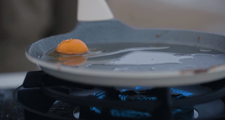 挑战四——匀火挑战。在极限环境下,老板燃气灶现场煎制的鸡蛋,蛋白边缘金黄酥脆,蛋黄中心凝而不溏,说明锅底火力分布非常均匀。这得益于3D速火技术匹配的224 个黄金三角出火孔、28个出火面,全方位无死角加热,受热面积提升52%。
